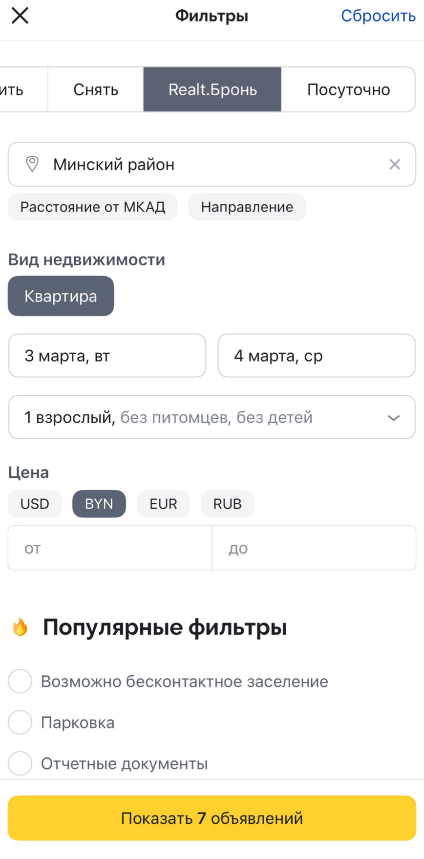 Чтобы посмотреть подходящие по выбранным фильтрам объявления - необходимо нажать кнопку Показать.