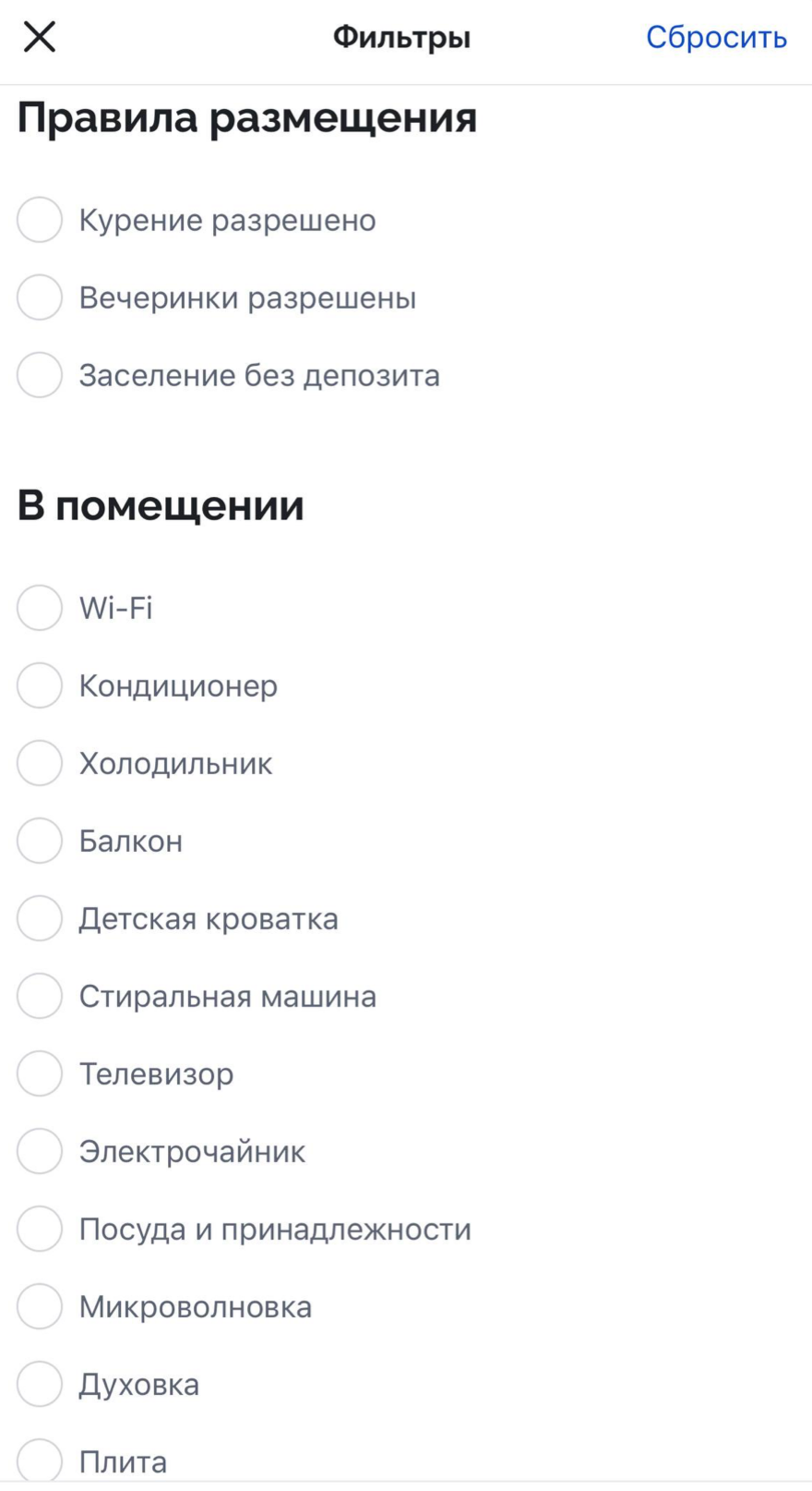 Ниже будут параметры объекта ( выбор спальных мест , дополнительные удобства и правила размещения )