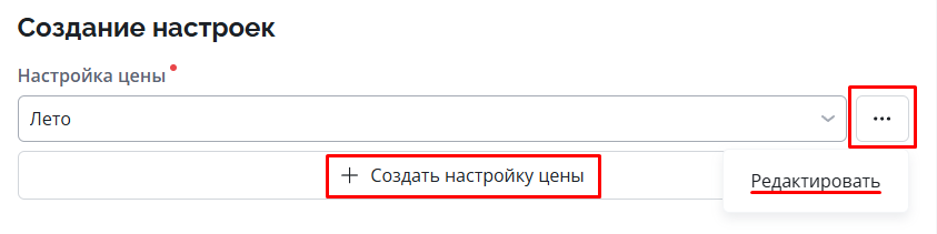 Для создания шаблона нужно нажать кнопку Создать настройку цены.