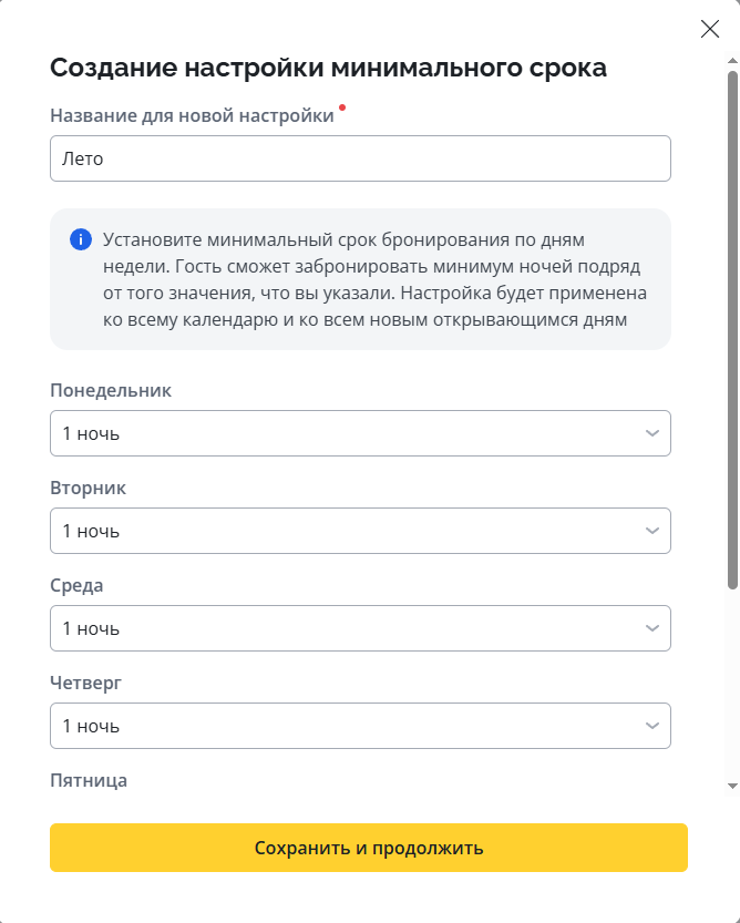 В настройках минимальной цены также можно создать шаблоны с минимальным количеством дней аренды гостем, по необходимости их тоже можно редактировать.